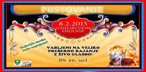 Vabljeni na veliko prešerno rajanje, ki bo 8. februarja 2013 ob 20. uri v gasilskem domu Smolnik. Za čago bo poskrbljeno z živo glasbo, najboljše maske bodo nagrajene! Vabljeni!